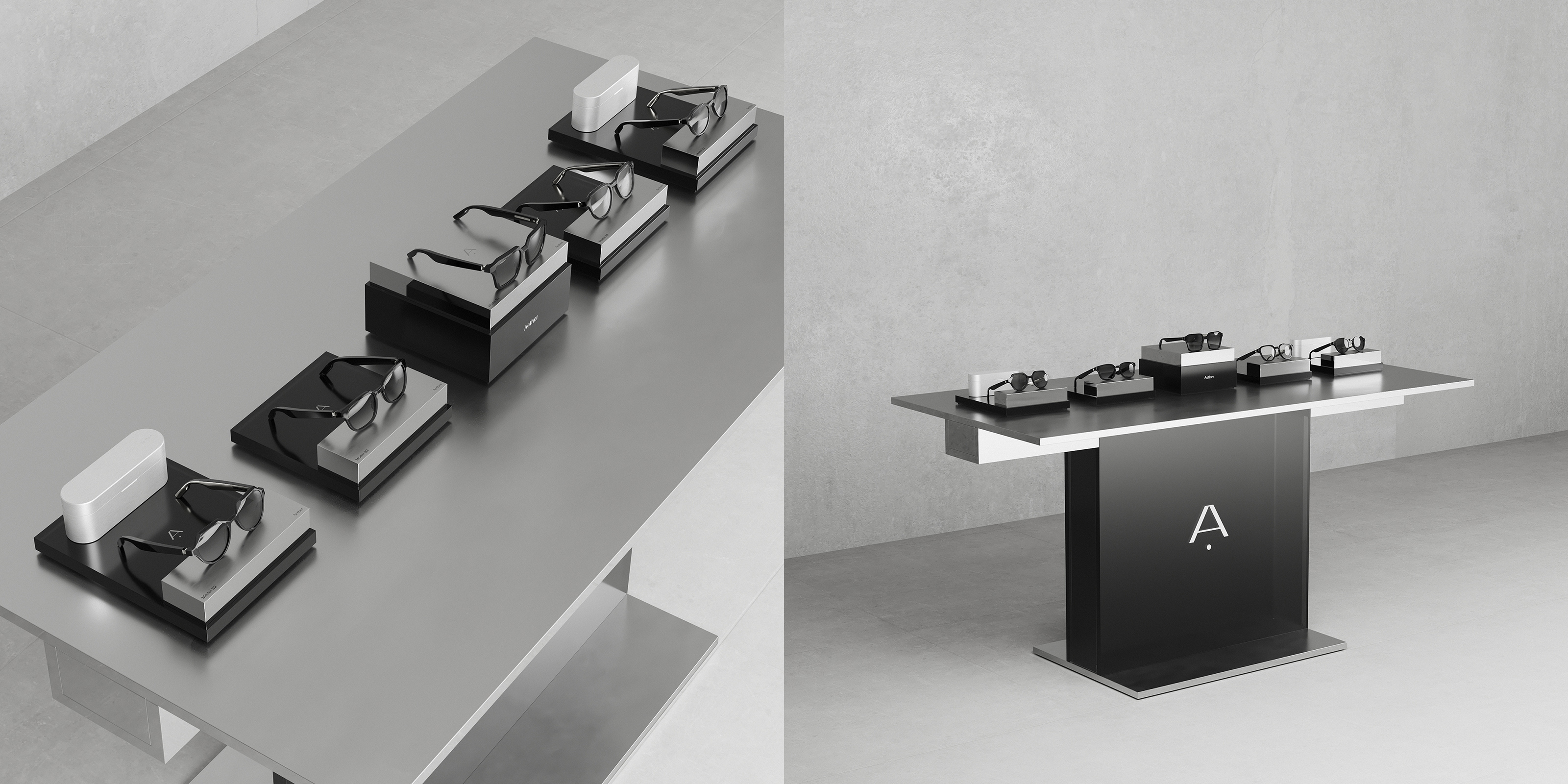Aether Retail is the experiential extension of the Aether Eyewear brand, translating the auditory-precision and design sophistication of Aether into physical, immersive spaces. From pop-ups to more permanent retail settings, the goal was to bring the brand’s DNA off screen and into the real world, letting people feel, touch, try and live the aesthetic and functional values embedded in every pair of frames.