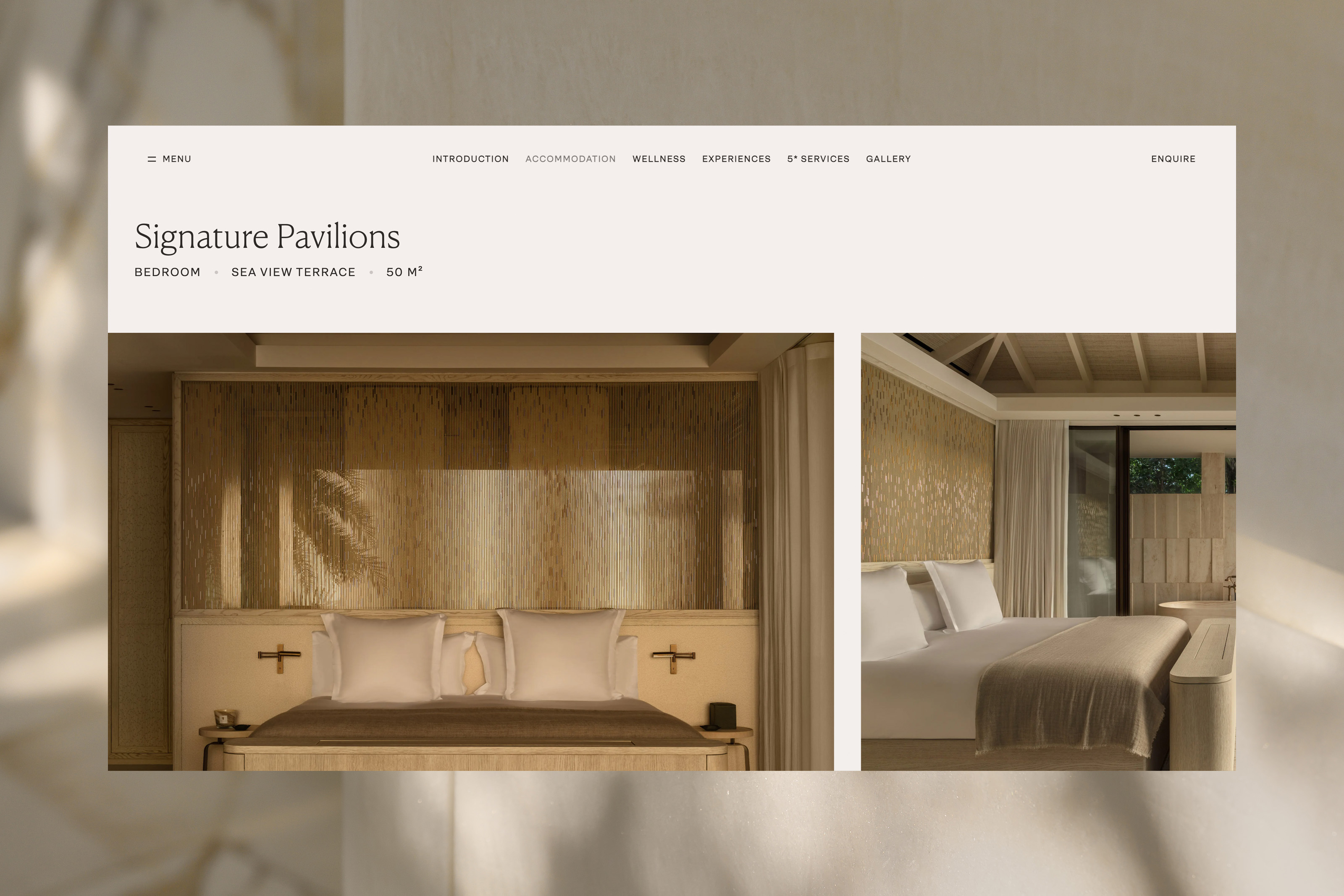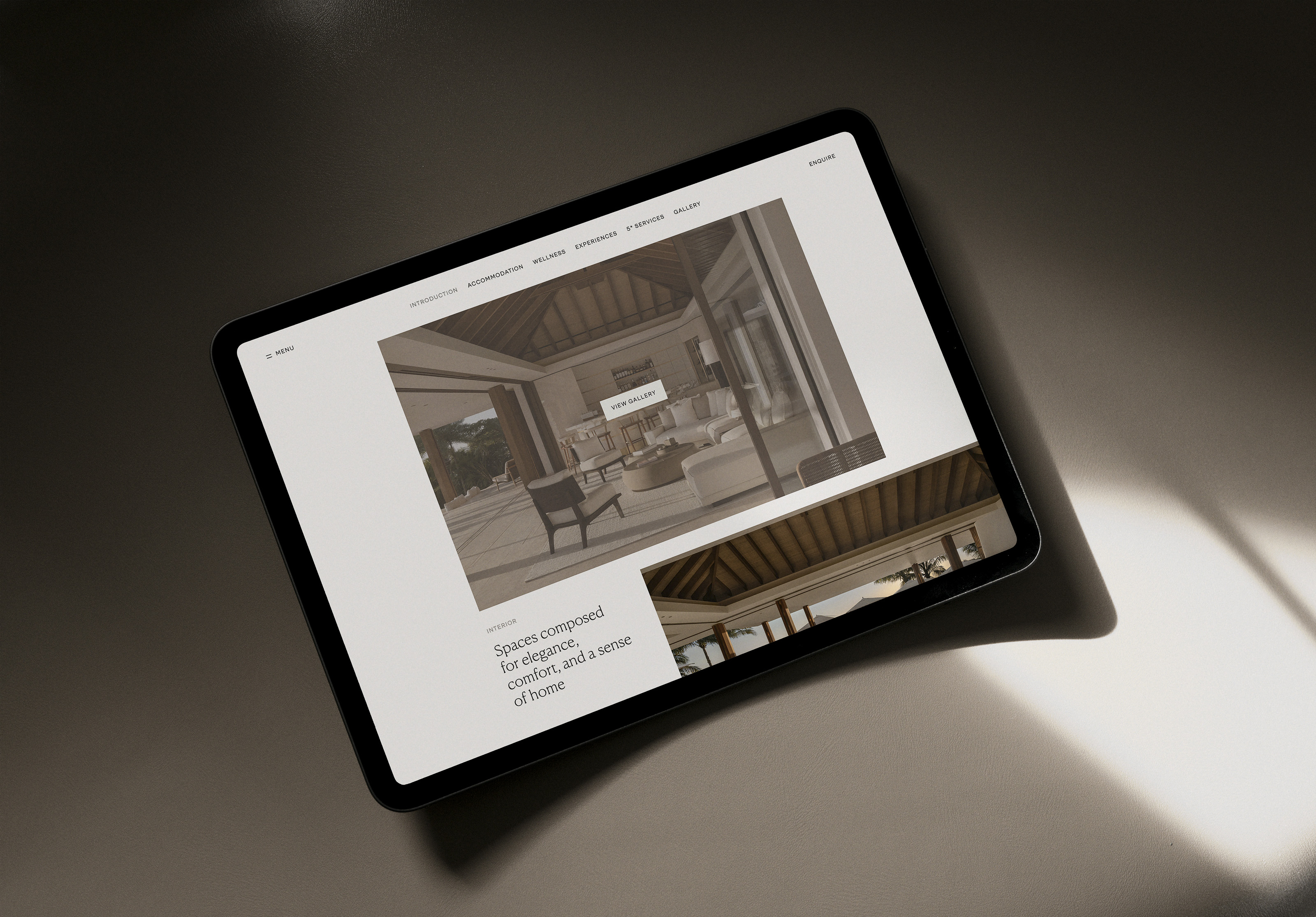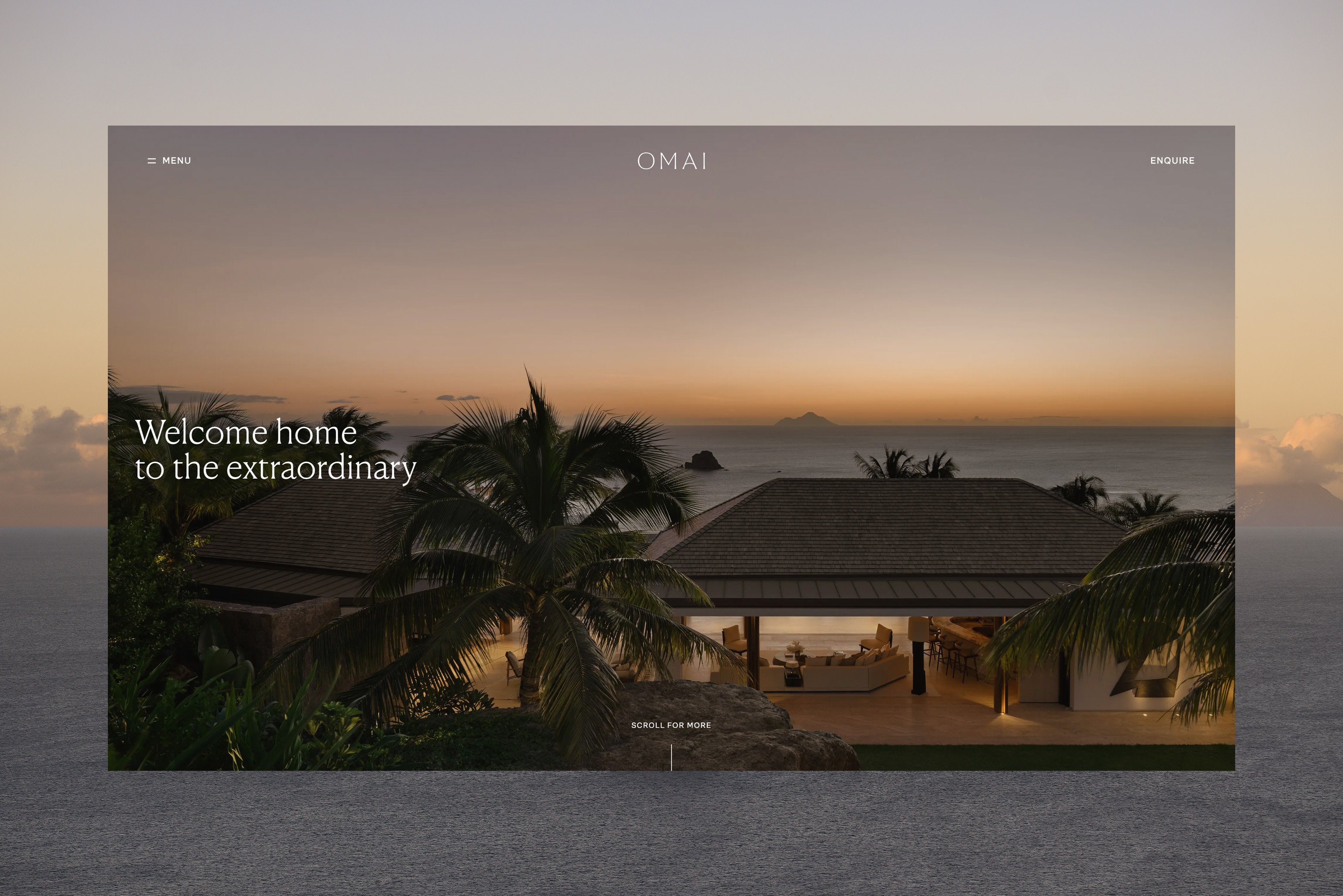 Omai’s first villa in Ibiza had established a benchmark for what destination living could be, but it existed under a different name and without the strategic framework to support what was to come. With new properties in development across Saint Barthélemy and beyond, the ambition was clear: a collection of extraordinary residences unified under a single, purposeful brand. What was needed was a complete brand world, built from the ground up, one with the depth and refinement to match the calibre of the properties themselves, and the flexibility to grow with the collection over the coming years.